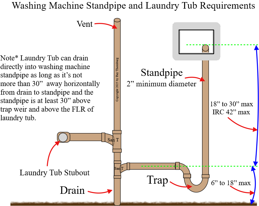 The combination waste and vent pipe might surprise a lot of inspectors because the trap arm dips down in a way which normally would create a S trap. It works in this case because the down pipe is oversized allowing air in to prevent the trap from siphoning dry.