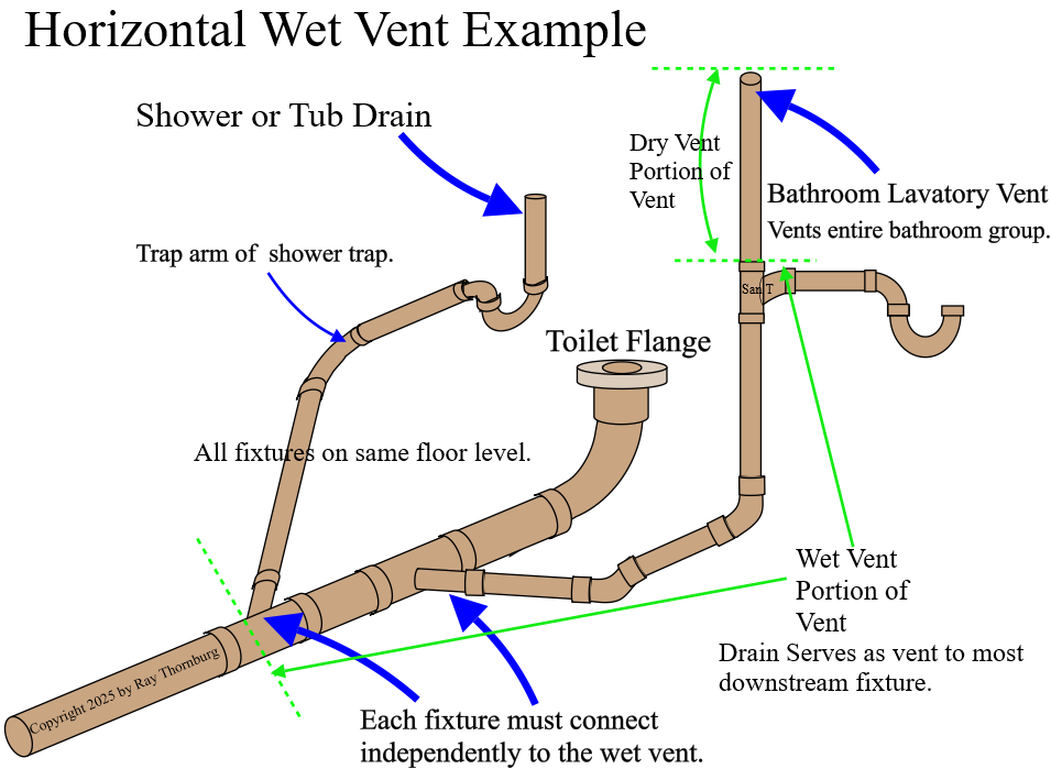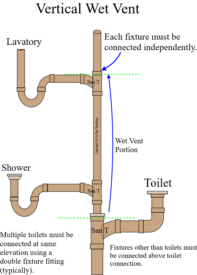 - Each fixture must connect independently to the wet vent. (Not adhering to this rule is a common violation.)